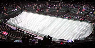 雨。試合は全て翌日に延期。たまにしか当選しないウィンブルドンのチケットだったのに...